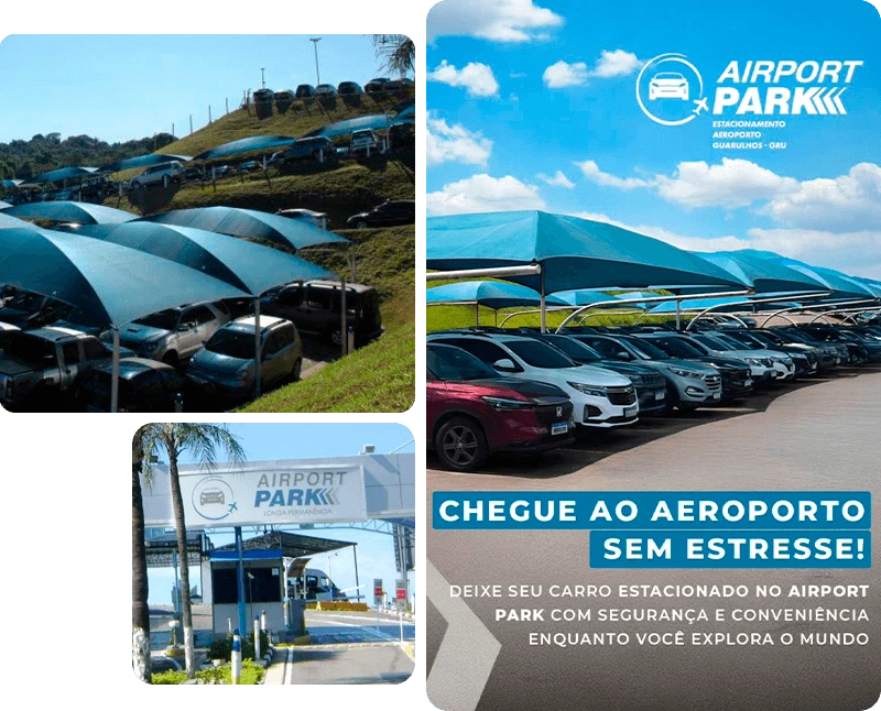 O Airport Park é o primeiro estacionamento de longa permanência do Brasil, com 17 anos de experiência e 99,9% de índice de satisfação. Aberto 24 horas, é o maior e mais completo da região, ao lado do Aeroporto de Guarulhos. Com estrutura que garante segurança, conforto e comodidade, faz o cliente sentir-se dentro do próprio aeroporto. Conta ainda com parceiros exclusivos que oferecem benefícios e facilidades extras.